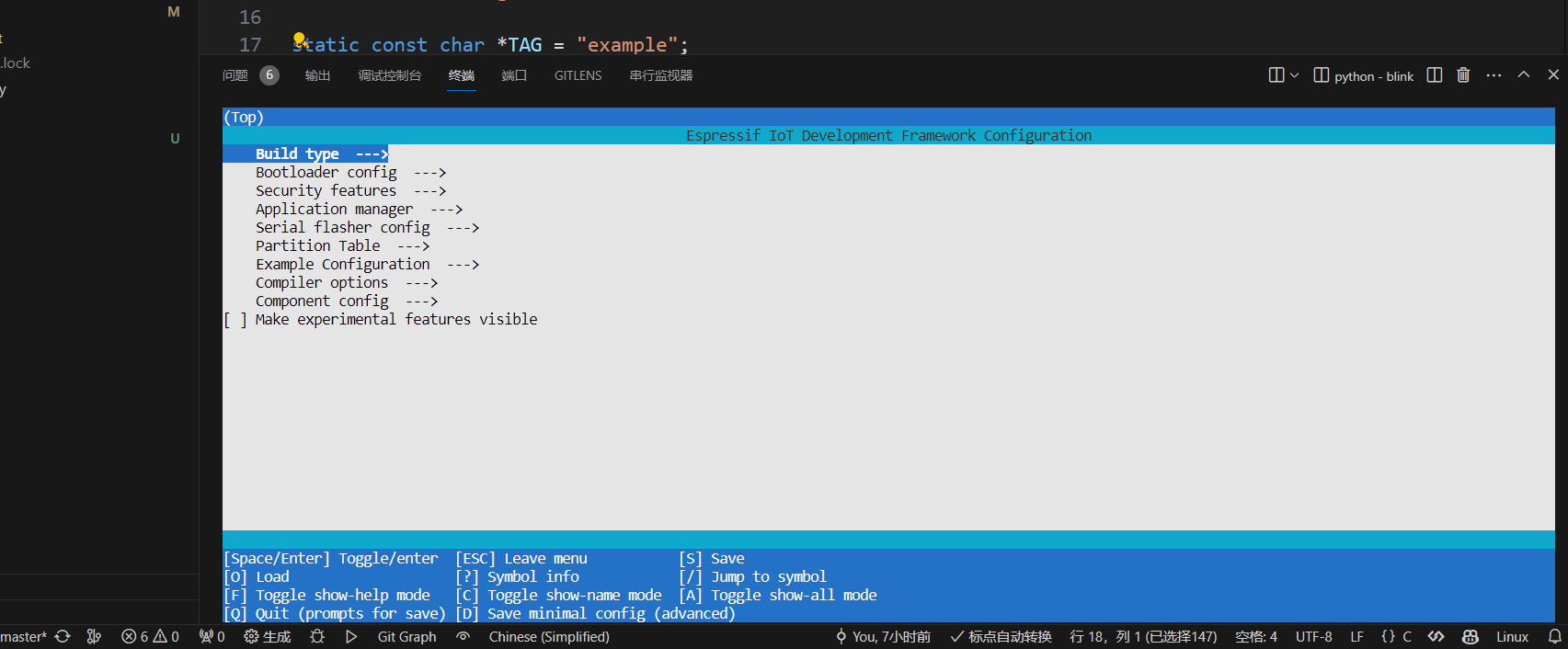 补充:如果使用esp-idf插件打开menuconfig,只需要点击对应的快捷键(小齿轮)
