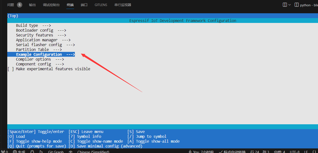 下面使用idf.py menuconfig 命令打开 Menuconfig (配置菜单):