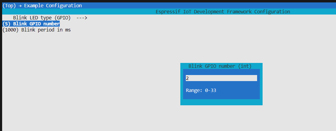 会看到两个选项,修改Blink GPIO为自己开发板上的引脚,我这里是2号。