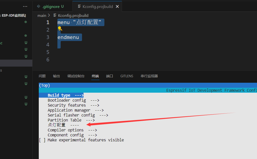 这里我们只需要知道,这个 Kconfig.projbuild 文件就是用于灵活定义项目配置的文件,从官方文档里我们可以得知:这种配置文件会有两种格式。分别是Kconfig 和 Kconfig.projbuild 文件,他们的区别简单来说就是作用域不同,一个用于定于项目全局配置,一个用于定义组件配置,具体的区别后面会讲,这里就不描述了。