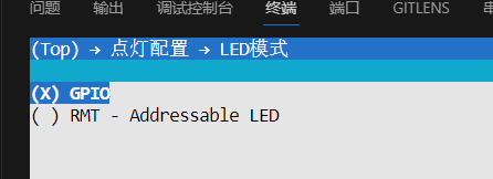 BLINK_LED: 控制LED模式(选项)BLINK_GPIO:LED连接的引脚BLINK_PERIOD:LED闪烁的时间