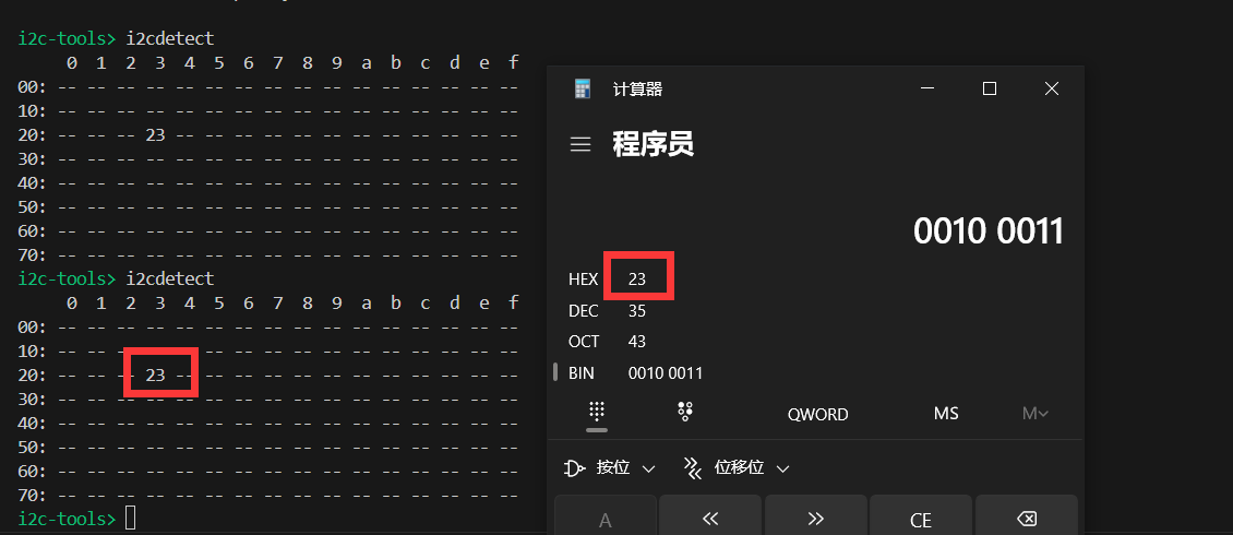 使用i2cdetect,我们成功找到了 BH1750的芯片地址,说明硬件连接无误。