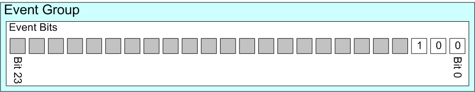 下图表示一个 24 位事件组, 使用 3 个位来保存前面描述的 3 个示例事件。在图片中,仅设置了 事件位 2。(包含 24 个事件位的事件组,其中只有三个在使用中)