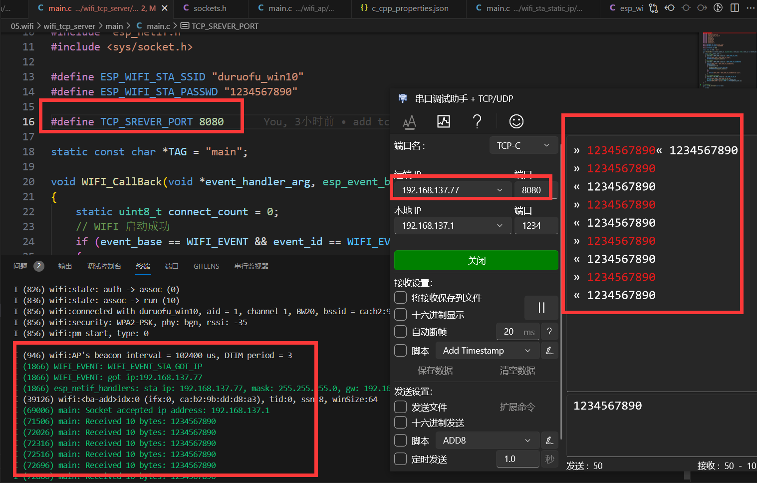 代码见: https://github.com/DuRuofu/ESP32_Learning/tree/master/06.wifi/wifi_tcp_server