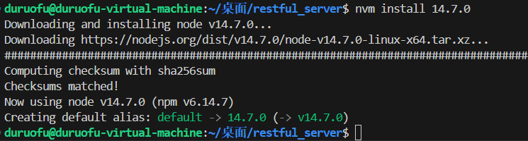 使用nvm install 14.7.0命令安装V14.7.0版本的Ndoe.js(示例工程的前端项目较为老旧,这里使用低版本的Node):