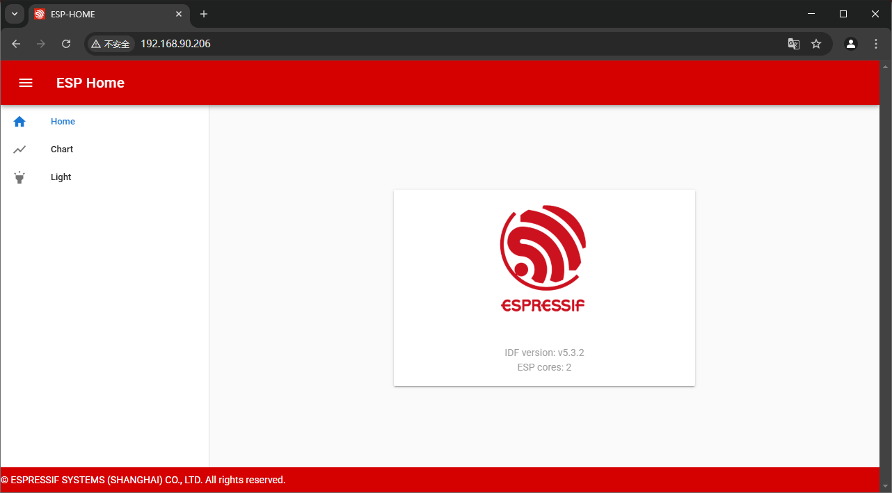编译烧录代码,再在浏览器输入ESP32的IP地址(注意要在同一局域网),可以看到新网页已经成功被ESP32托管: