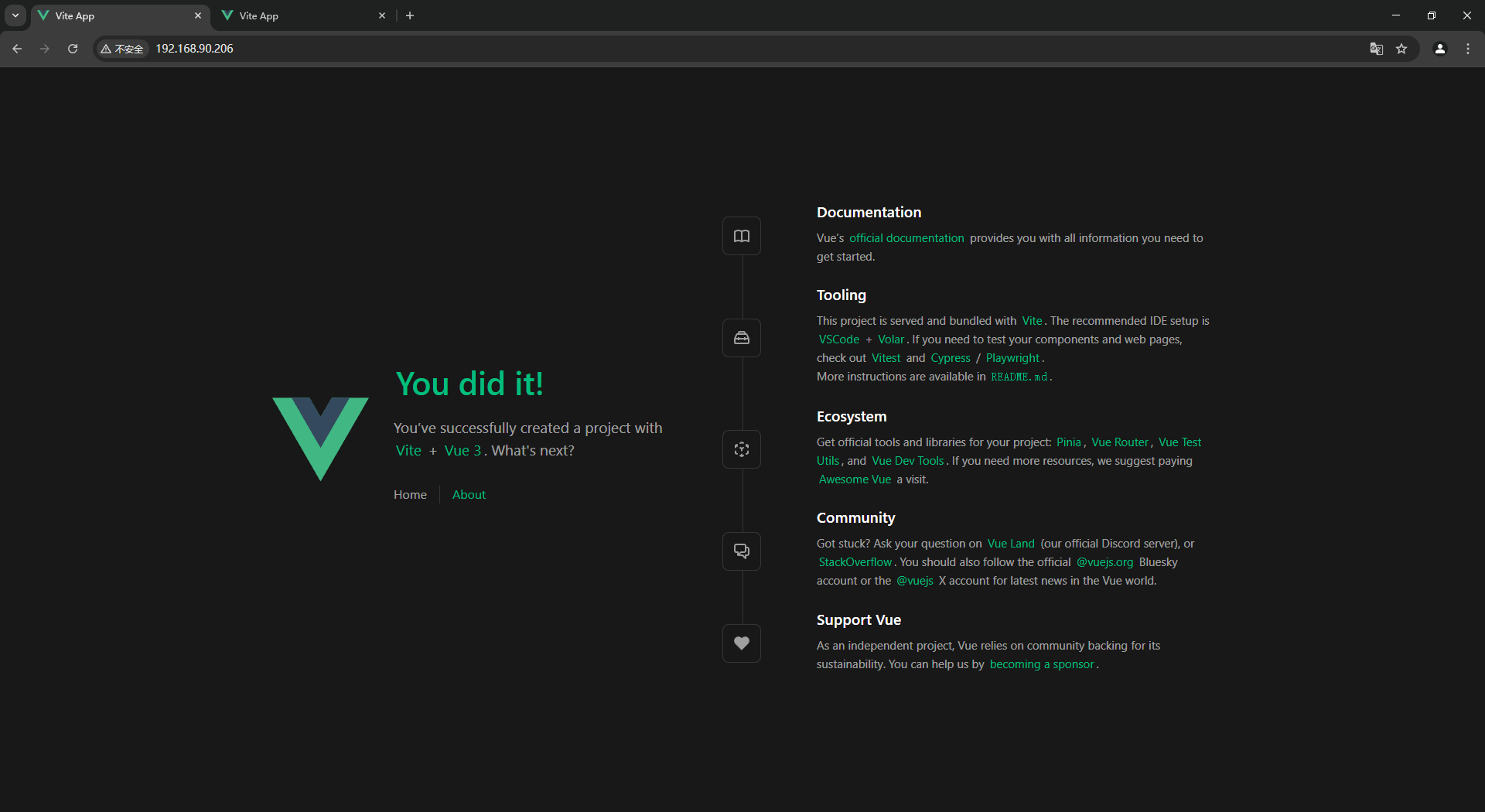 在front目录下新建一个Vue3项目,可以参考Vue3官方文档:创建一个 Vue 应用
