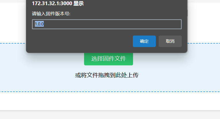 拖拽固件到页面上,输入版本号: