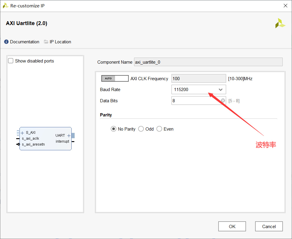 - AX-uartlite IP核简介:AXI-uartlite是Xilinx提供的驱动串口的IP核,用AXI-Lite总线接口和用户进行交互,速度根据不同的芯片调整,总的来说使用比较简单,收发数据也比自己写的串口驱动程序要稳定