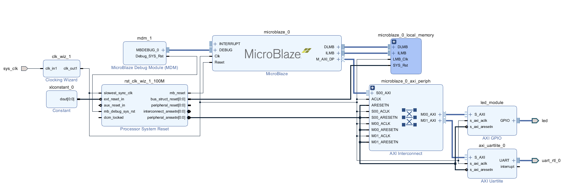MicroBlaze 是 Xilinx 公司提供的一款 32/64 位软核嵌入式处理器,是一款高度灵活可配置的易用型处理器, 它能够利用 FPGA 内部通用资源和相关 IP 核,实现可编程片上系统(SOPC)的设计。该处理器采用的是32 位 RISC(Reduced Insrtction System Computer)优化结构和 Harvard 总线结构,广泛适用于 Spartan、 Virtex 和 Artix 等系列的 FPGA。