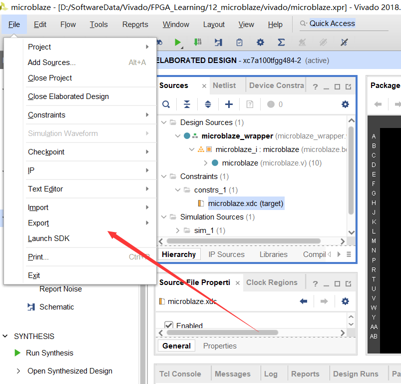 嵌入式硬件平台搭建的流程与普通的FPGA设计并无太大区别·仍然是设计输入、设计综合、设计实现等主要步骤。在硬件平台设计实现并生成Bt文件后,需要执行硬件平台导出的操作,即将所搭建的硬件平台的信息导出至Vivado SDK中,以便在SDK中继续进行软件开发