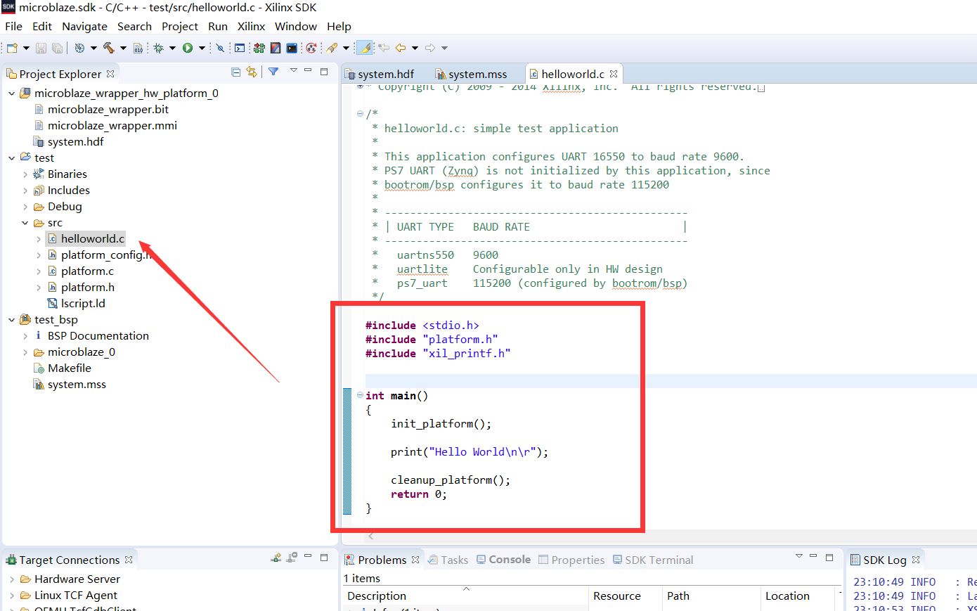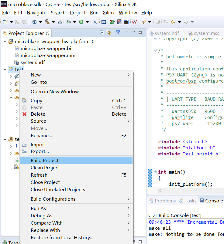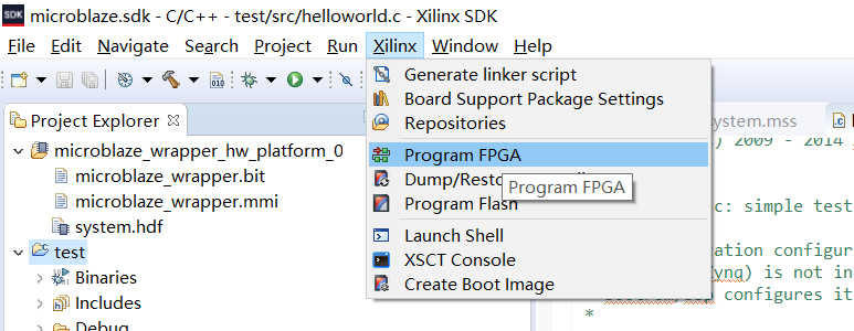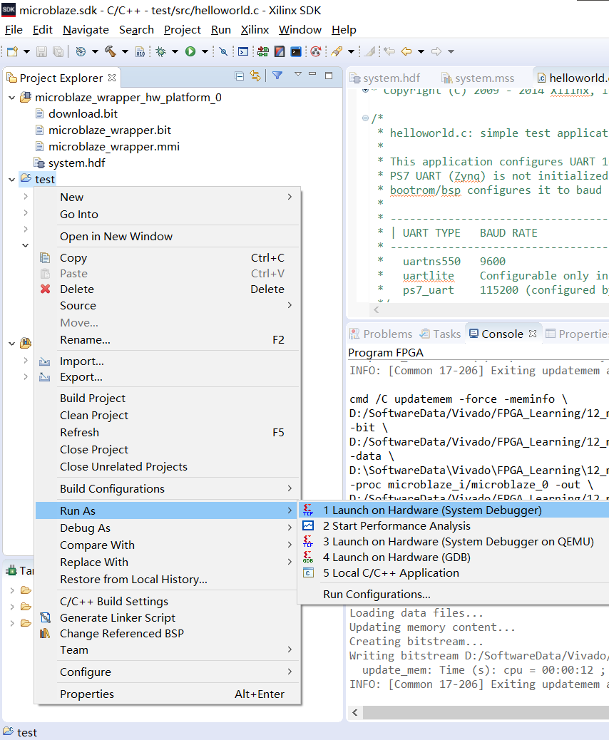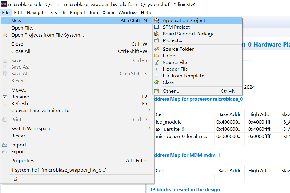在Vivado将硬件平台设计导出至SDK(或者Vitis)中后,在SDK中可针对硬件平台进行创建对应的软件应用工程以及BSP板级支持包工程。SDK工具会根据具体的硬件平台信息将对应硬件模块得软件提取至BSP工程中·用户可方便地使用BSP中所提供的驱动函数来进行软件开发。SDK中可以进行软件的编写调试以及FPGA平台的硬件配置。