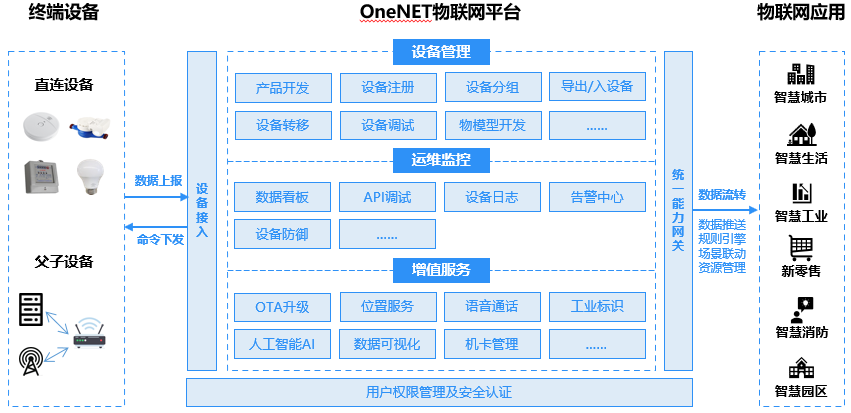 OneNET物联网开放平台是中国移动打造的面向产业互联和智慧生活应用的物联网PaaS平台,OneNET支持适配各种网络环境和协议类型,可实现各种传感器和智能硬件的快速接入,提供丰富的API和应用模板以支撑各类行业应用和智能硬件的开发,有效降低物联网应用开发和部署成本,满足物联网领域设备连接、智能化改造、协议适配、数据存储、数据安全以及大数据分析等等平台级服务需求。