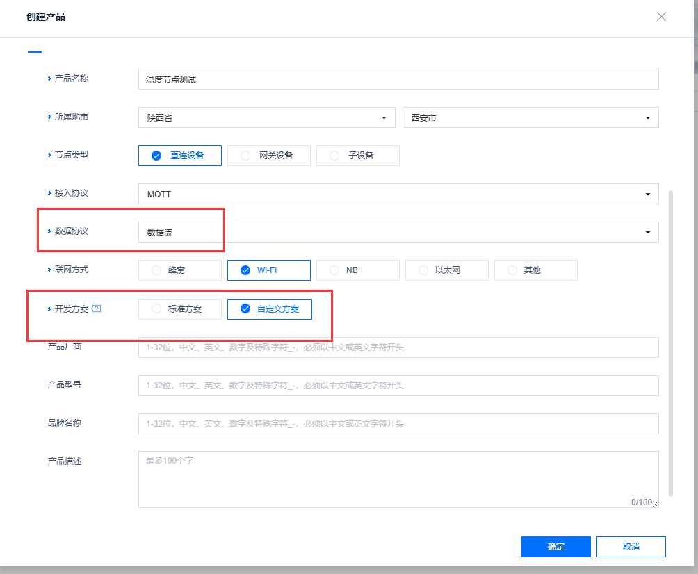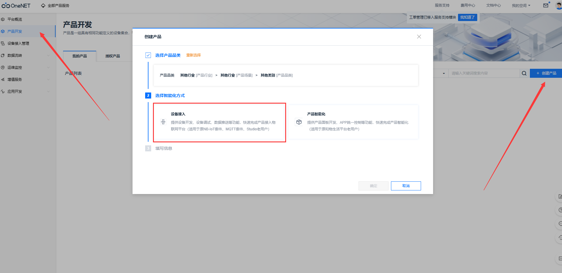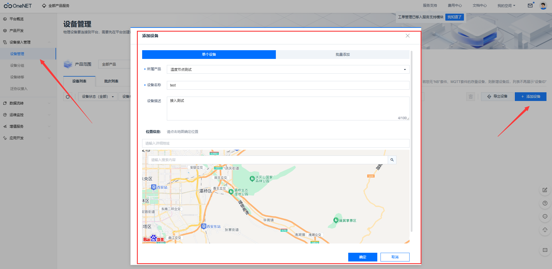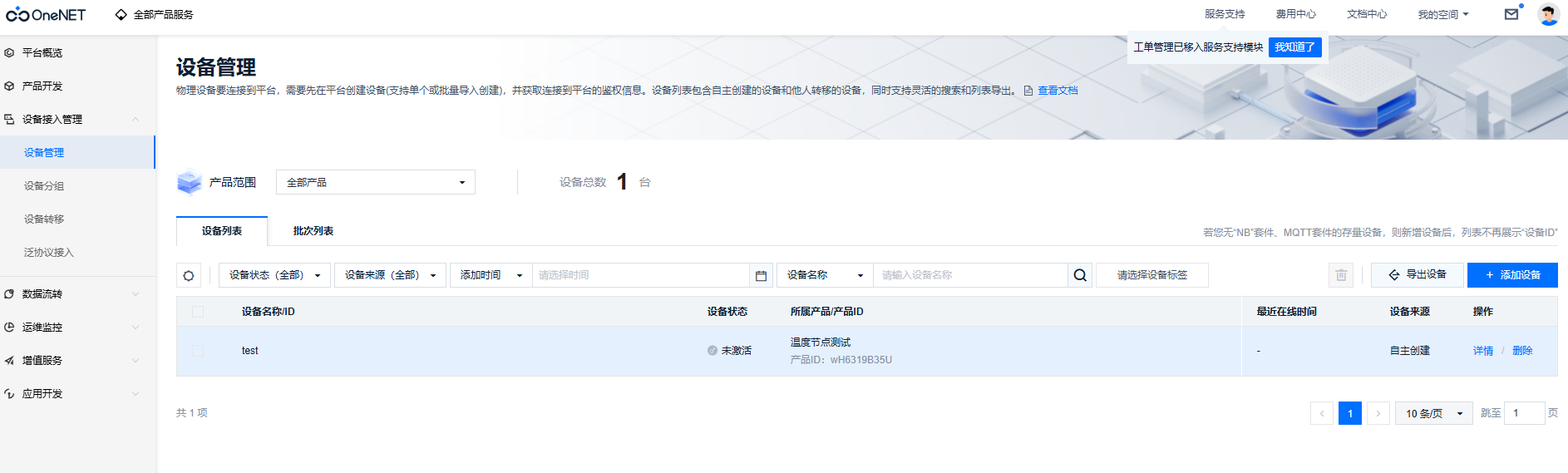 这里我们添加一个新的设备,所属产品是我们刚才创建的产品: