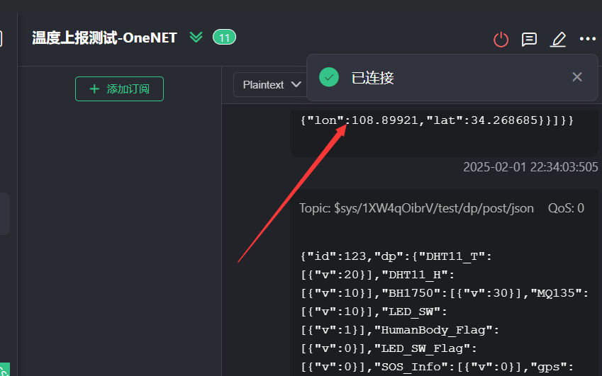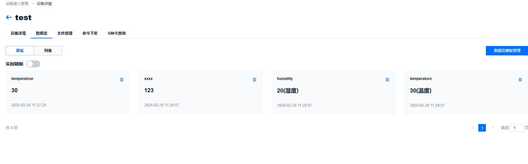 数据流设备上报数据使用主题:$sys/{pid}/{device-name}/dp/post/json