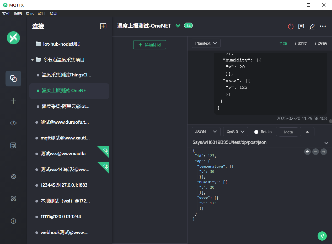 下面我们使用软件MQTTX去模拟设备连接平台: