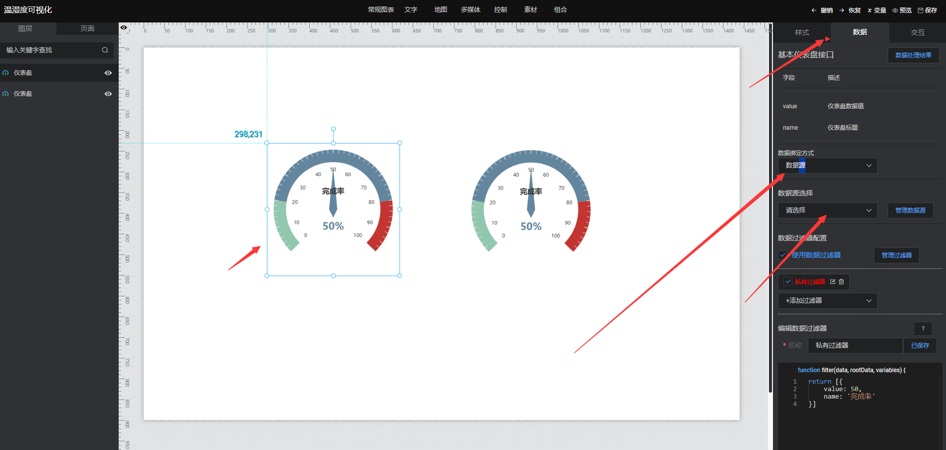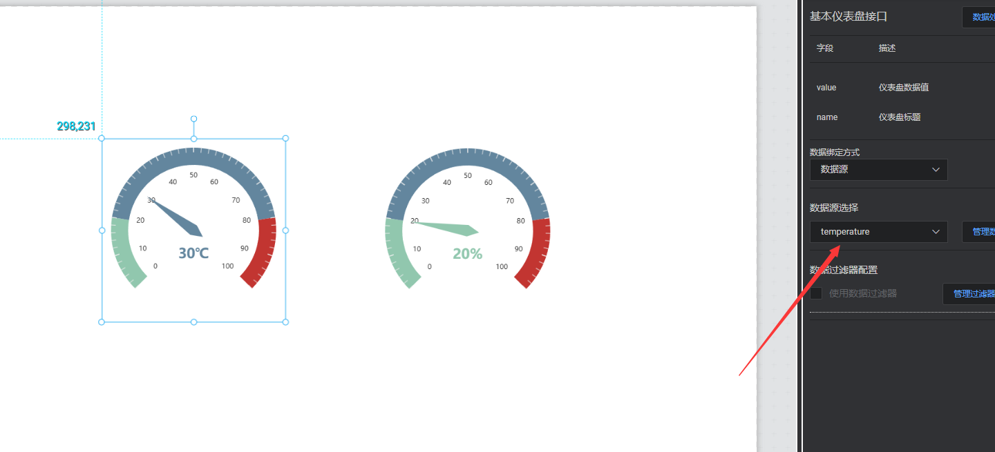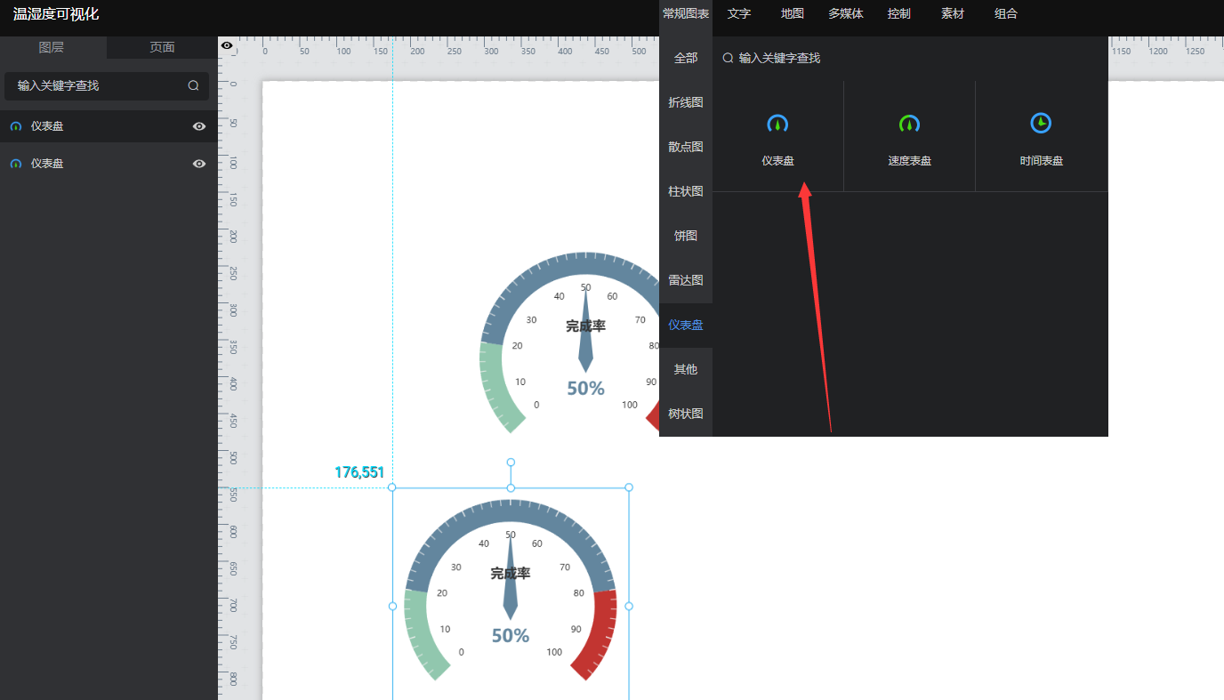 这里我使用一个基本的仪表盘展示温湿度数据: