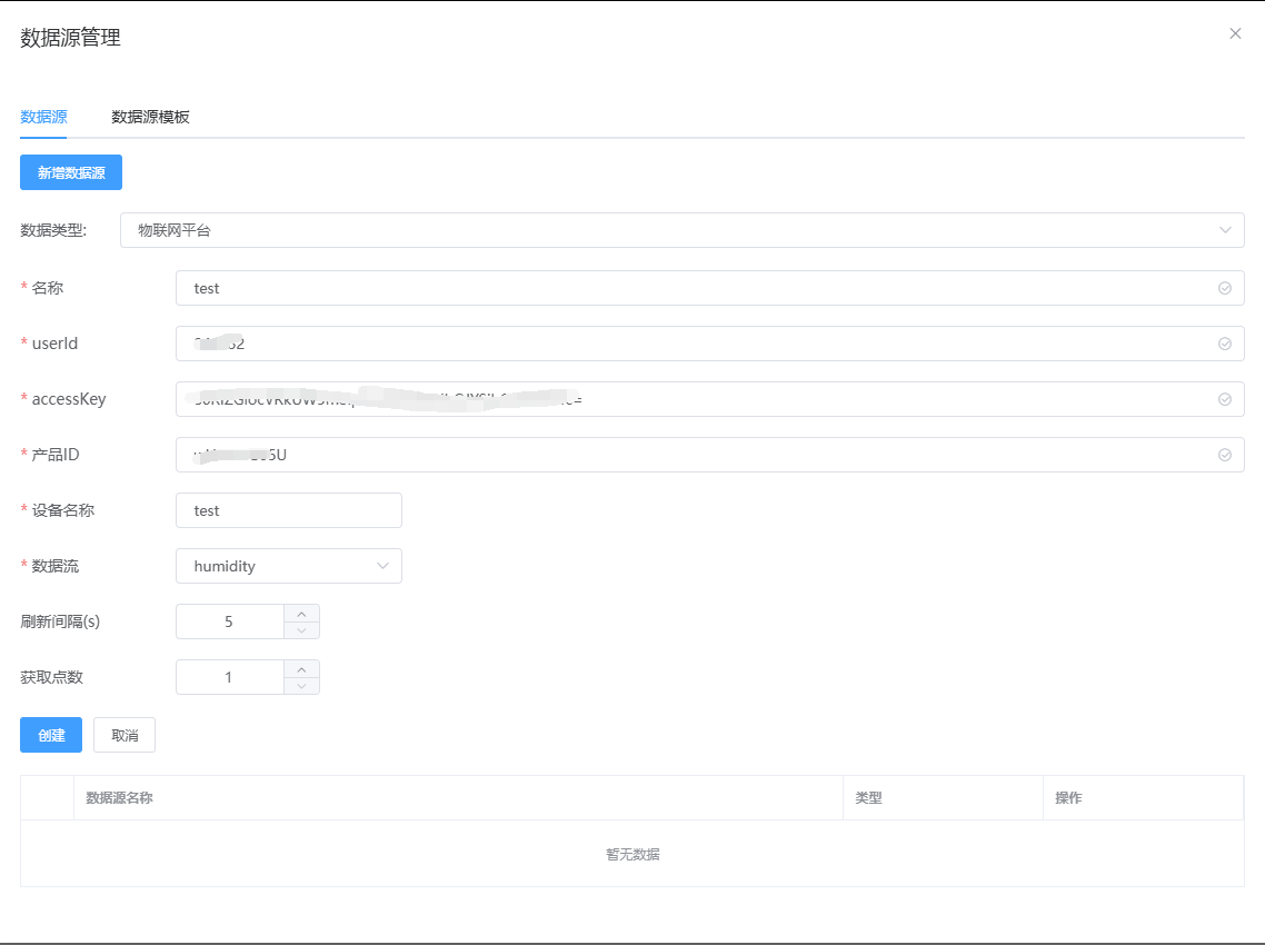 这里的配置按照提示填写就行,accessKey就是设备详情页的设备密钥。