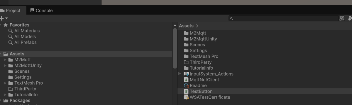 为了目录简洁整齐,也可以在Assets 里新建ThirdParty--> M2Mqtt目录,把仓库Assets里的内容粘贴到 M2Mqtt目录下,也OK,如下图