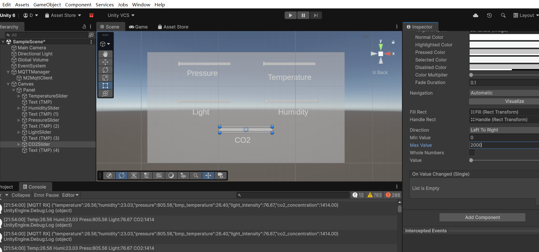 └── CO2Slider- 每个 Slider 的 Min / Max 对应该传感器的合理范围,例如: