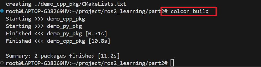同样,在包的同级目录下使用colcon build进行构建: