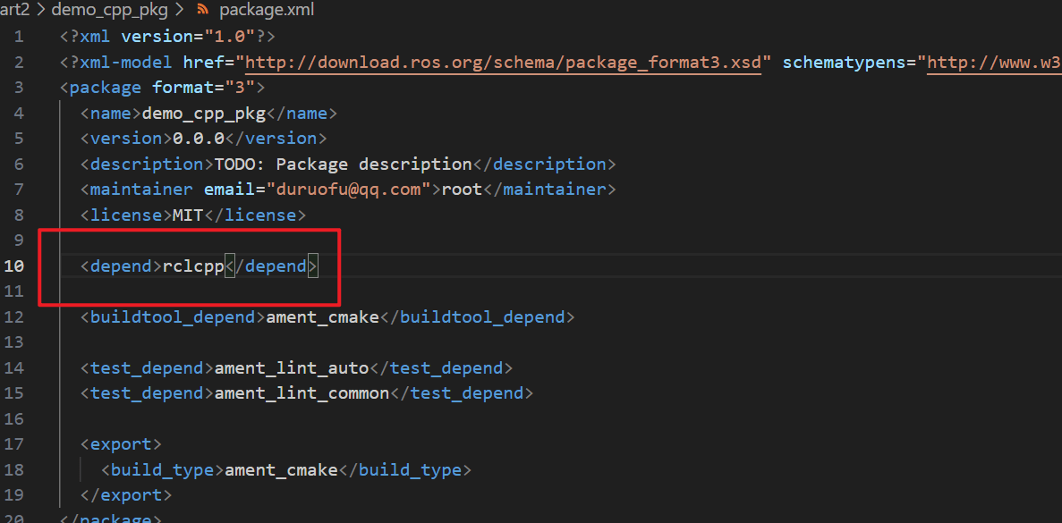 在package.xml里面声明依赖: