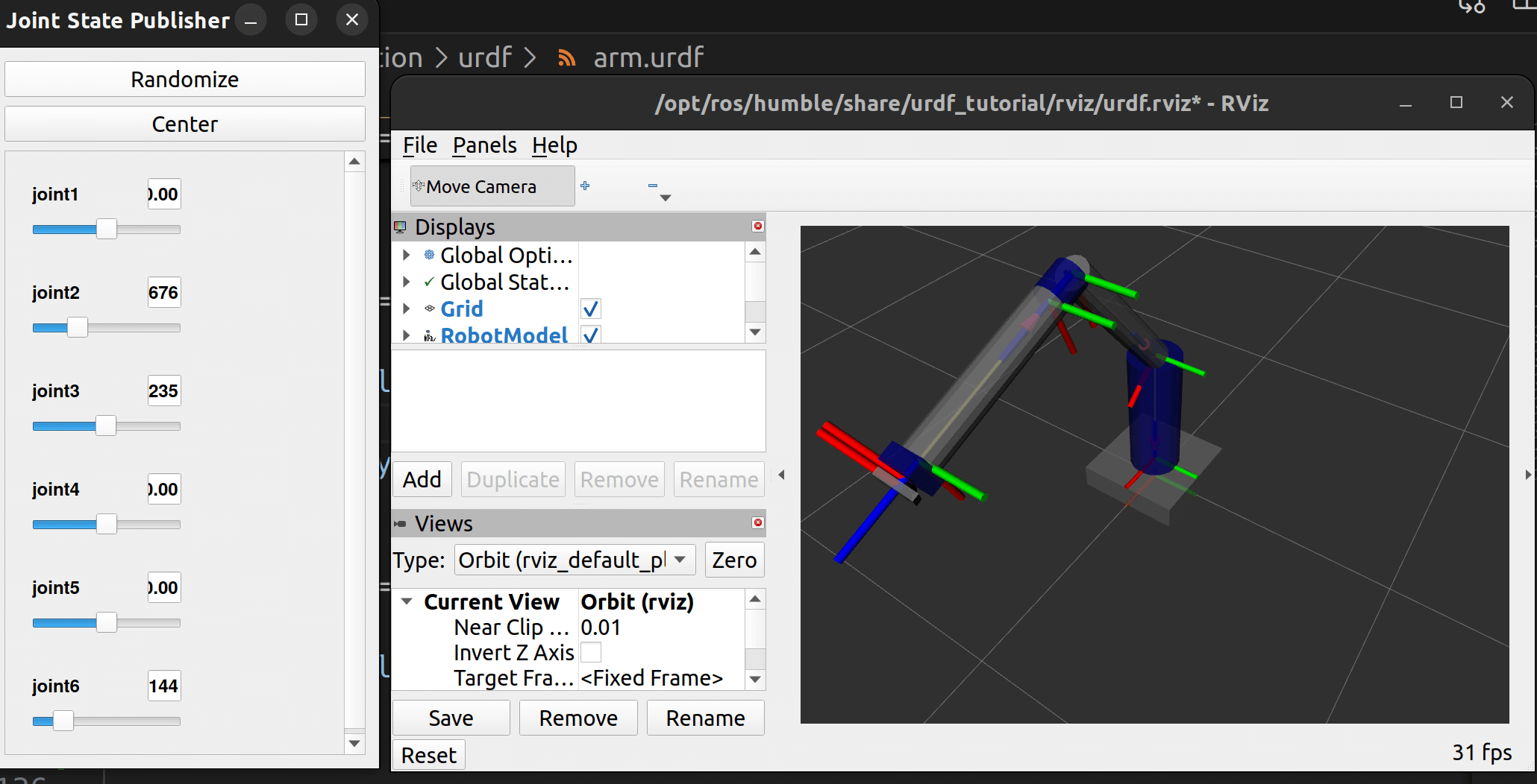 在urdf文件夹新建arm.urdf