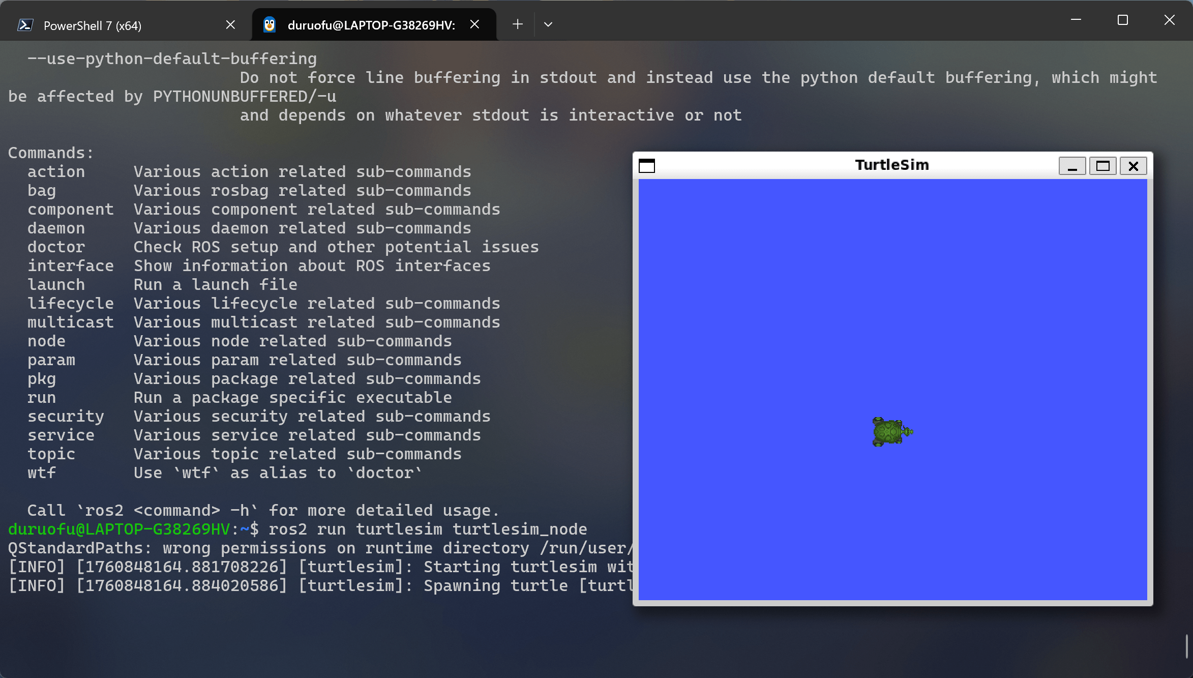 ros2 run turtlesim turtlesim_node弹出下面的界面: