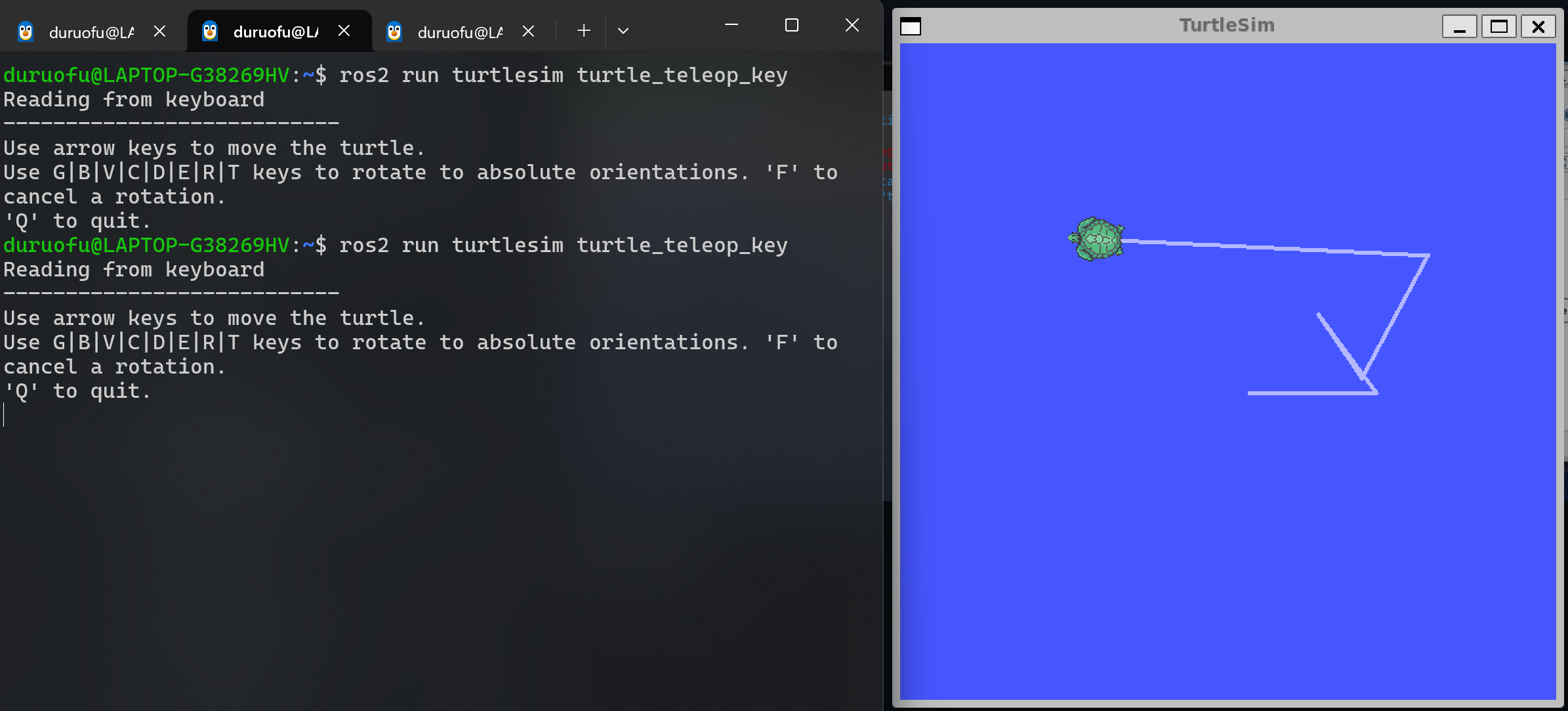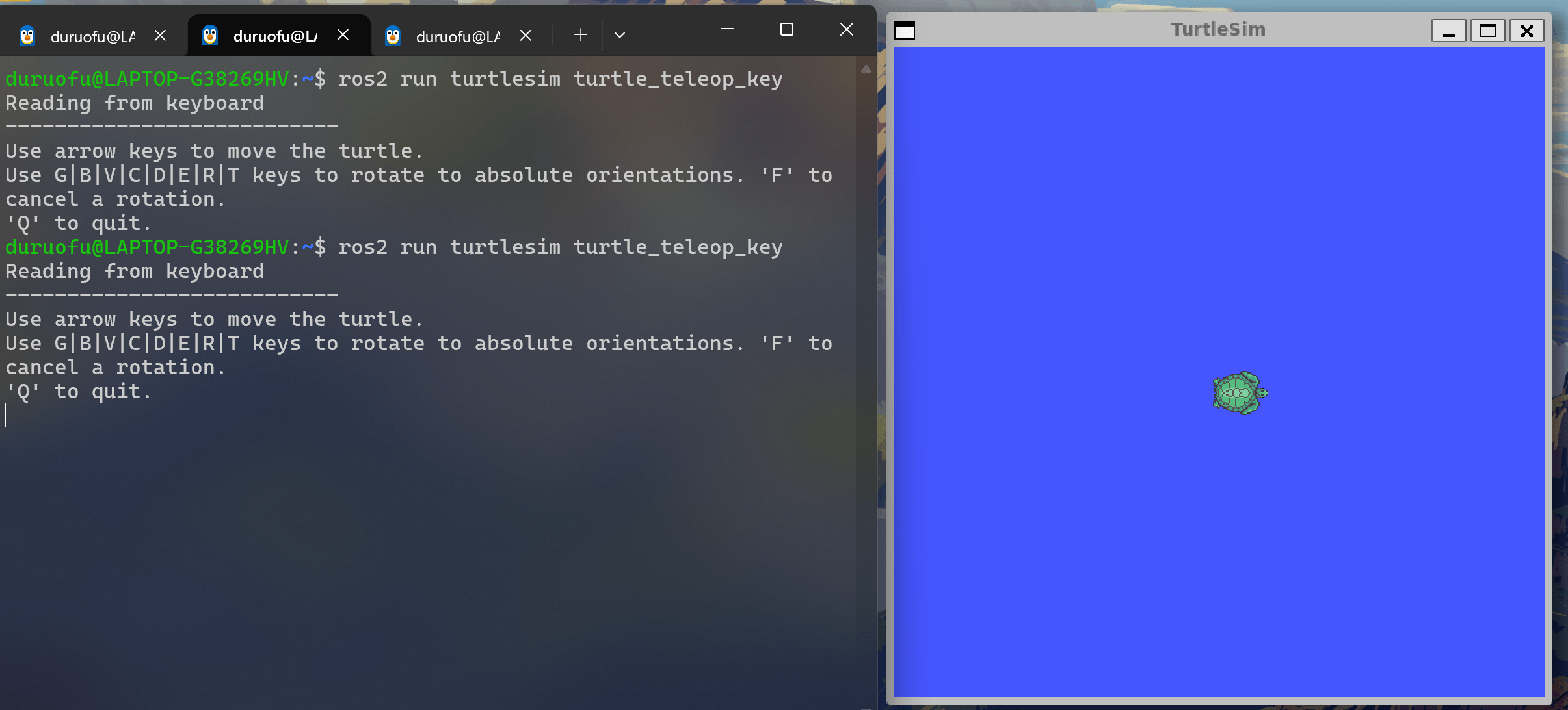 在终端中运行以下命令启动小海龟节点: