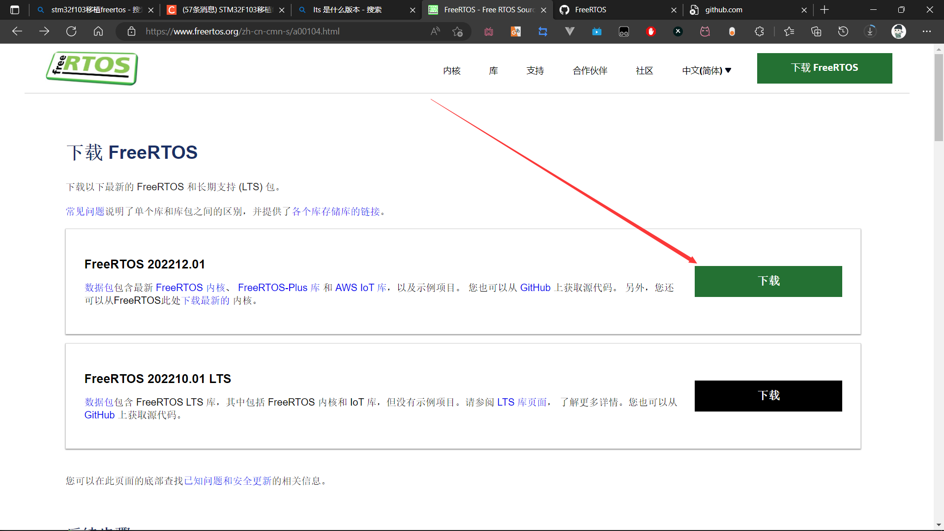 去freertos官网下载源码:https://www.freertos.org/zh-cn-cmn-s/a00104.html