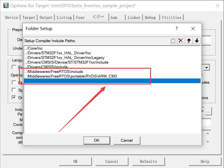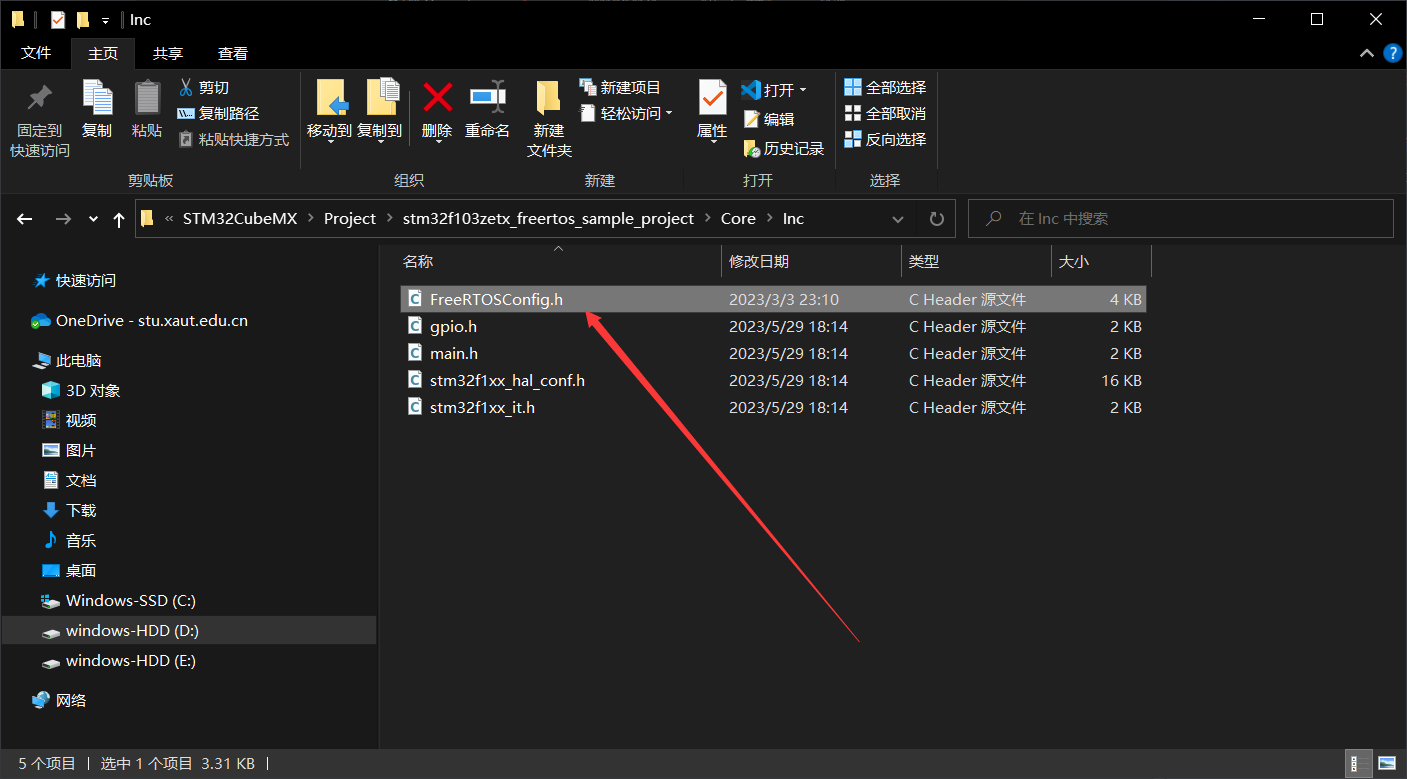 新建空白的FreeRTOSConfig.h到core/inc文件夹;