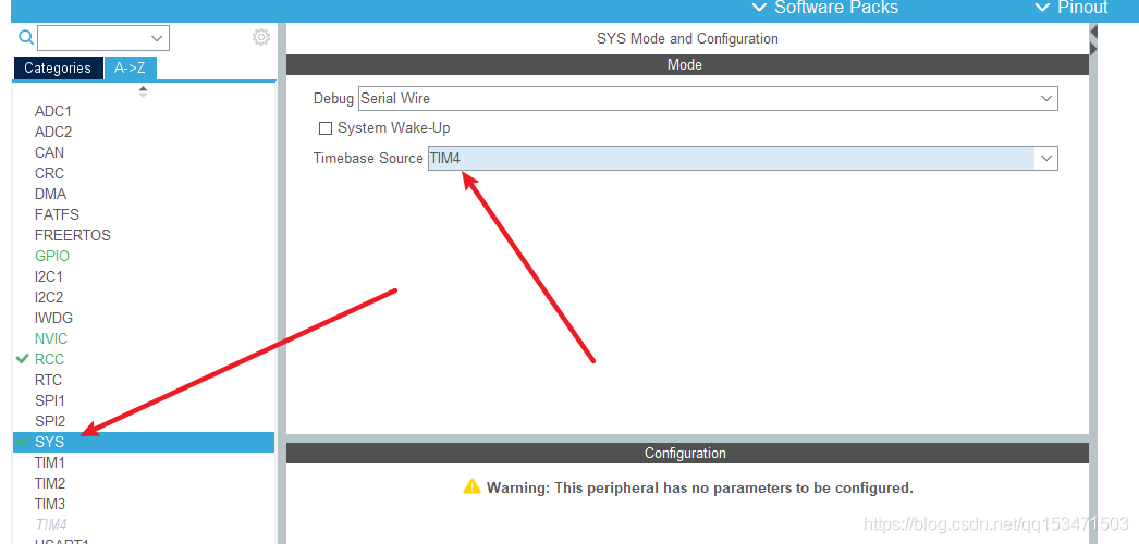 由于FreeRTOS使用系统嘀嗒定时器当作心跳,HAL库也使用了这个定时器当作超时计数用,FreeRTOS和HAL库不能同时使用SysTick定时器,所在在这里将HAL库的定时器改为其他的定时器,这里改成了定时器4: