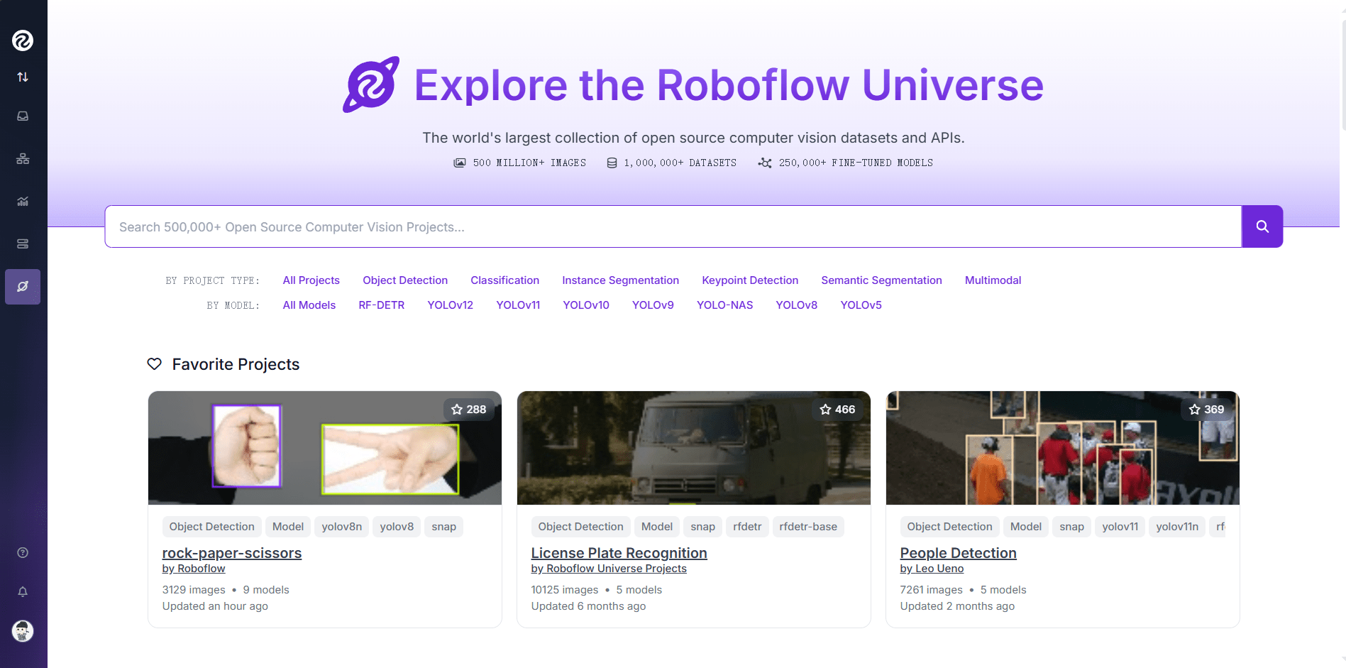 网上有很多公开的数据集可以选择,这里我使用 https://universe.roboflow.com/ 这个网站: