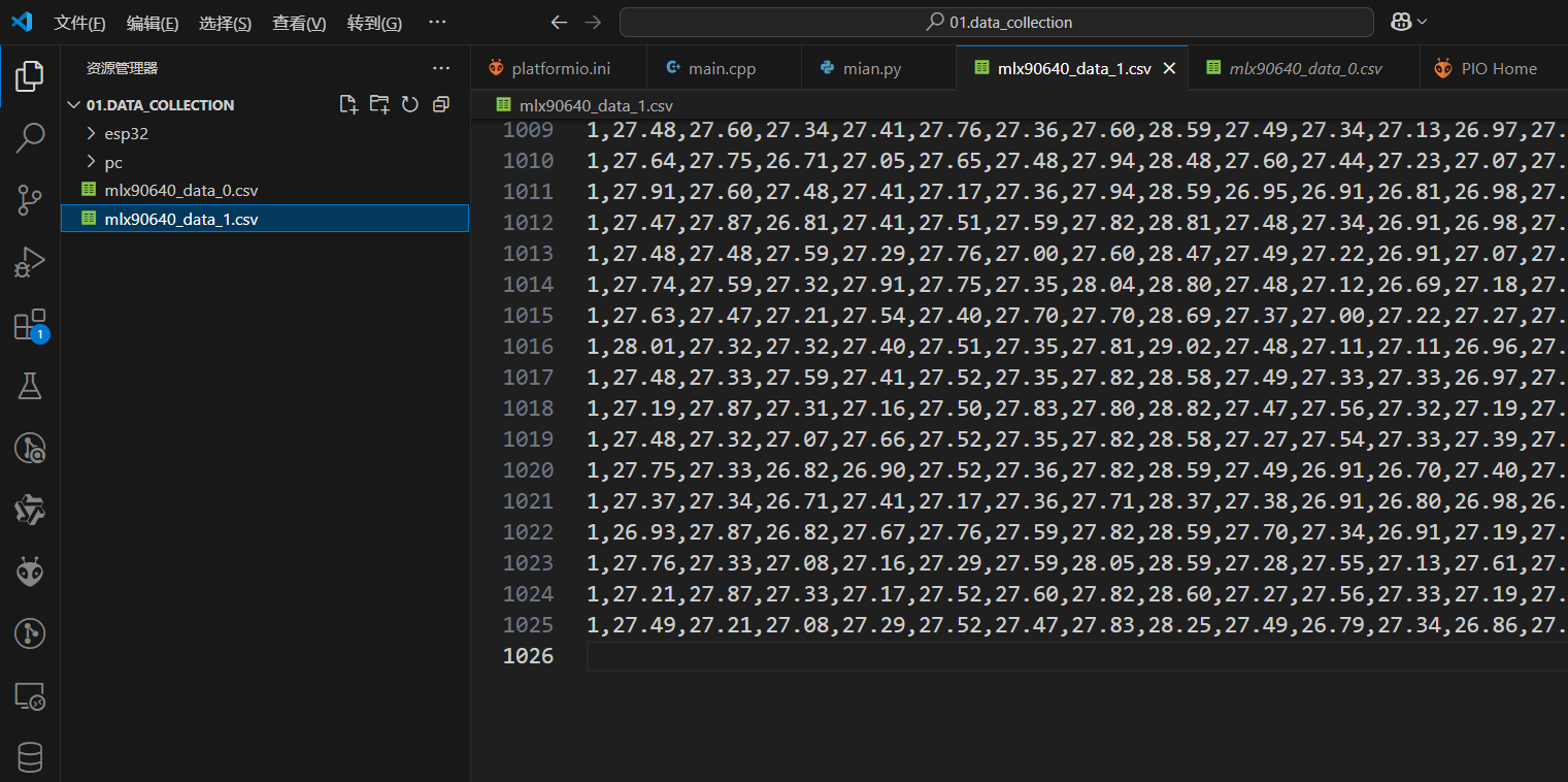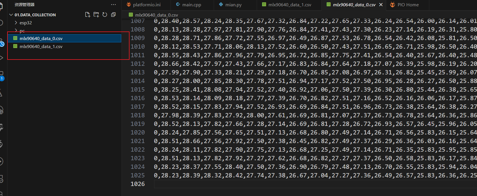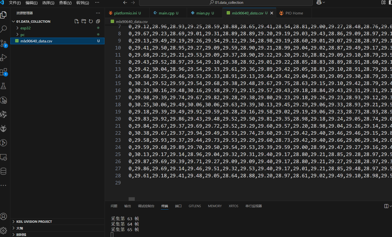 MLX90640-D55 数据收集测试程序(CSV输出,带标签)