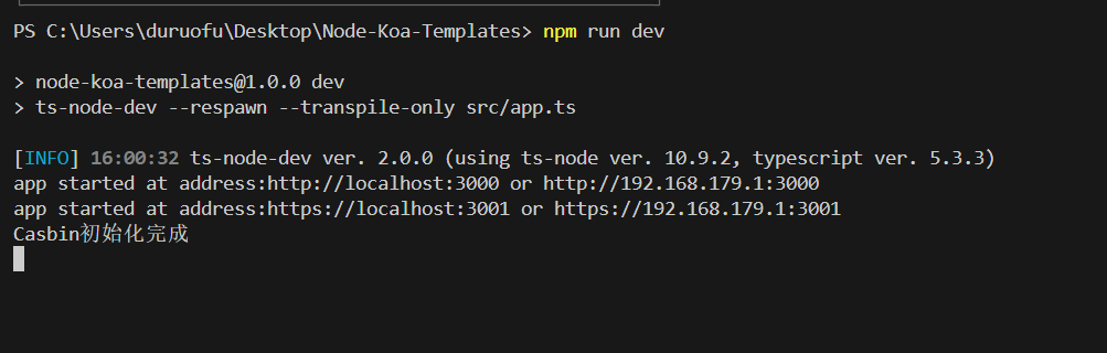 git clone https://github.com/DuRuofu/Node-Koa-Templates下载依赖: