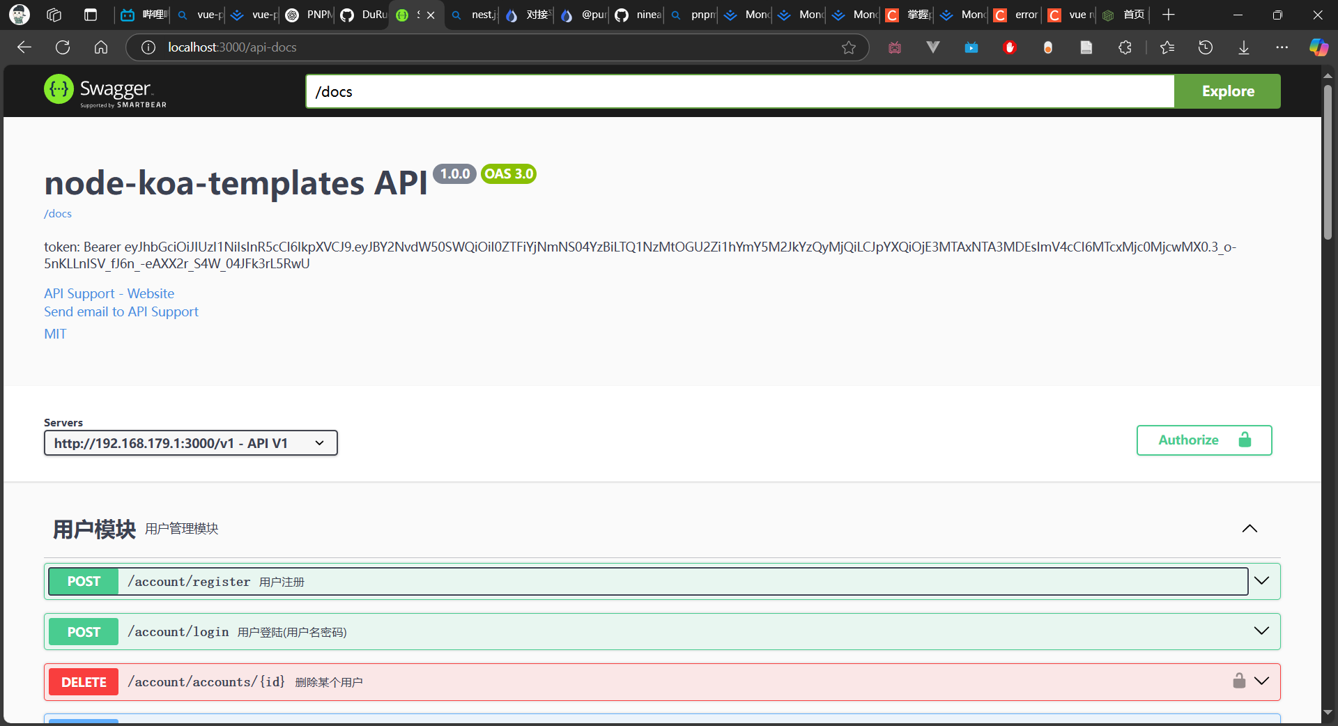 访问 http://localhost:3000/api-docs 查看服务是否正常启动,如下: