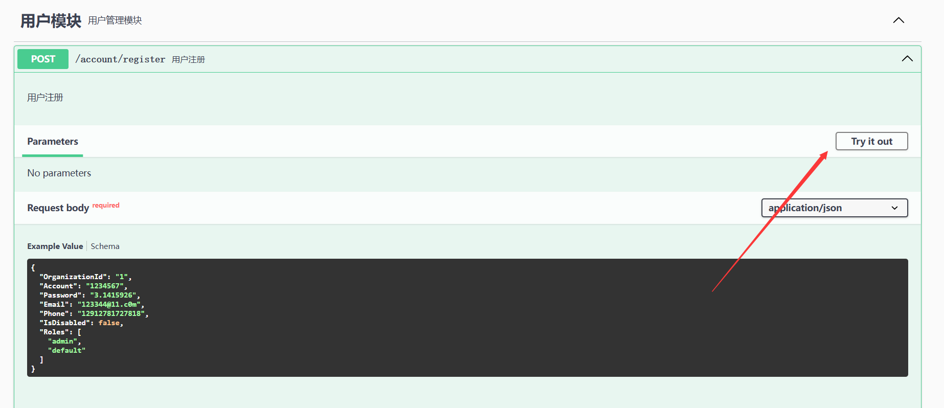 可以点击用户模块的用户注册创建一个用户: